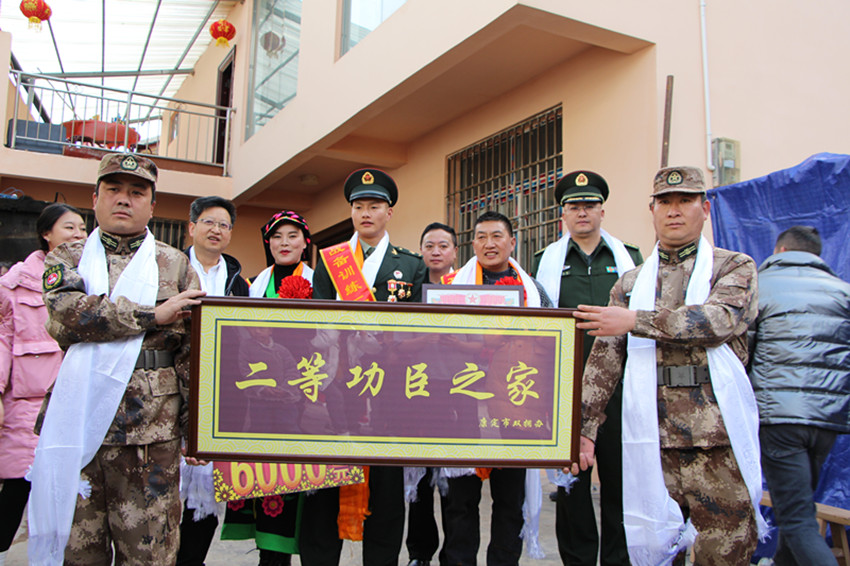 鑼鼓喧天,喜氣洋洋。2月9日,康定市姑咱鎮(zhèn)浸水村敲鑼打鼓迎接回鄉(xiāng)的王昊。康定市人民政府、康定市人武部和退役軍人事務(wù)局為王昊及家人披上綬帶、戴好紅花,鄭重地將喜報(bào)、慰問(wèn)金和“二等功臣之家”的牌匾送到他們手中。看著手中沉甸甸的榮譽(yù),王昊和父母的喜悅之情溢于言表。