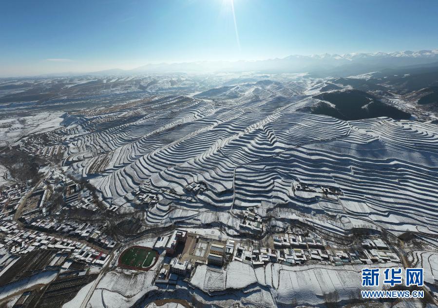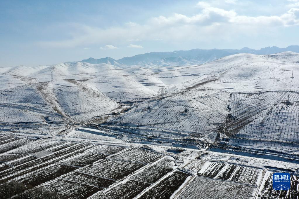 2月14日拍攝的烏鞘嶺及周邊雪景(無人機(jī)照片)。新華社記者 范培珅 攝