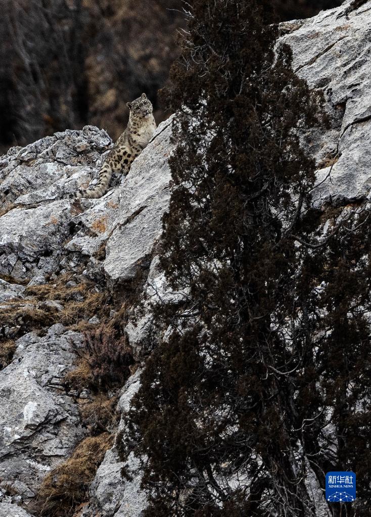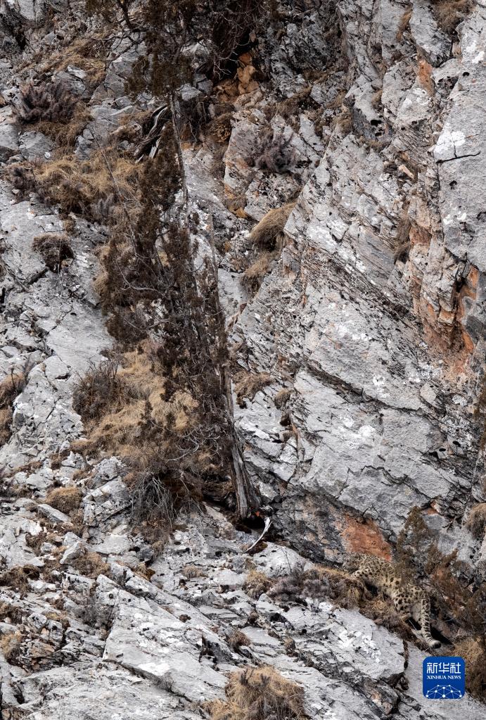 2月21日,在青海省玉樹藏族自治州雜多縣昂賽鄉(xiāng)境內(nèi)的昂賽大峽谷內(nèi),一只雪豹正在活動(dòng)。新華社記者 張宏祥 攝