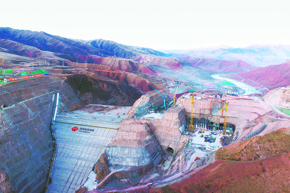 瑪爾擋水電站施工現(xiàn)場。國能青海公司供圖