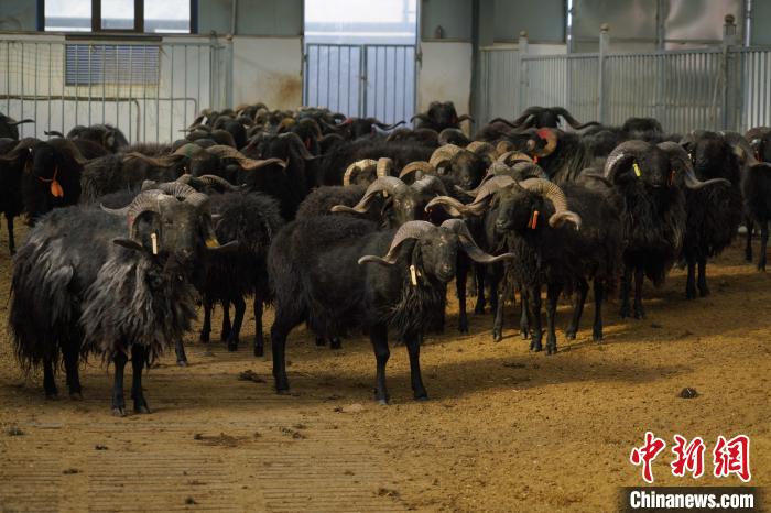 資料圖為青海省海南州優(yōu)良地方產(chǎn)品貴南黑藏羊。馬銘言 攝