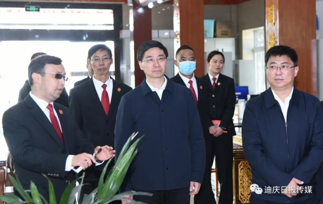迪慶州委常委、州委政法委書記楊學(xué)文陪同調(diào)研。迪慶州法院院長張宇、州檢察院檢察長趙成武分別陪同調(diào)研。