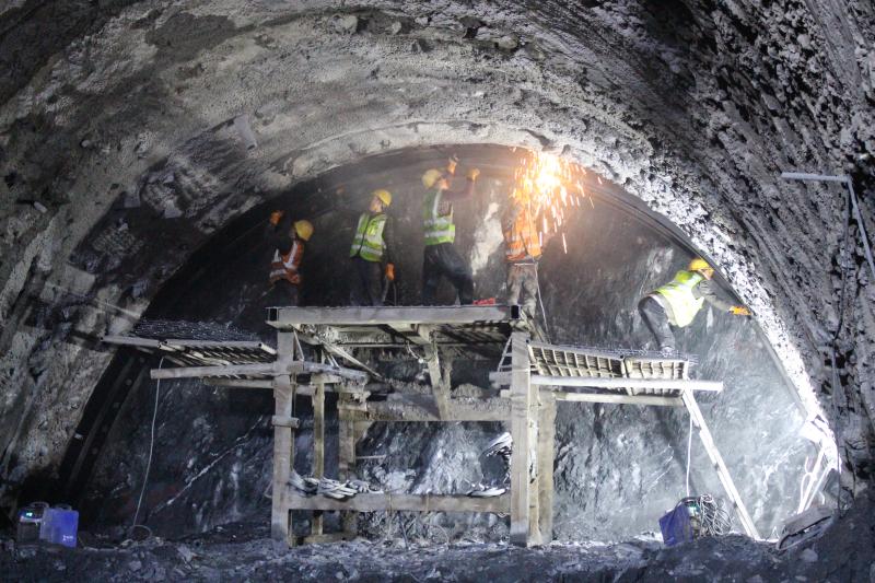 近日,由中鐵十六局集團(tuán)承建的滇藏鐵路麗香段哈巴雪山隧道施工現(xiàn)場(chǎng)傳來(lái)喜訊,哈巴雪山隧道8號(hào)至8-1號(hào)橫通道區(qū)間(全長(zhǎng)248米)順利貫通。據(jù)悉,哈巴雪山隧道是全線重難點(diǎn)控制性工程,全長(zhǎng)9523米,最大埋深1155米,為I級(jí)高風(fēng)險(xiǎn)隧道。原先按照2個(gè)橫洞、1個(gè)斜井、1個(gè)平導(dǎo)組織施工,后因施工艱難,將平導(dǎo)延長(zhǎng)至5774米,并將平導(dǎo)內(nèi)與正洞聯(lián)接橫通道增加到12個(gè)。此次貫通的8號(hào)至8-1號(hào)橫通道貫通后,哈巴雪山隧道僅剩2個(gè)橫通道區(qū)間61.8米尚未貫通。預(yù)計(jì)今年5月底實(shí)現(xiàn)哈巴雪山隧道貫通。