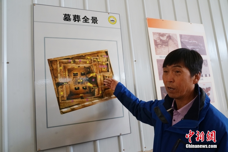 3月18日,青海省海西州都蘭縣博物館館長張杲光介紹熱水墓群2018血渭一號墓。中新社記者 馬銘言 攝