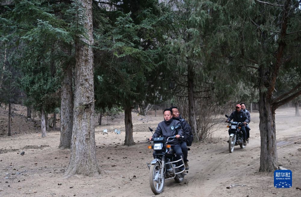 3月24日,在青海省黃南藏族自治州麥秀林場,護林員騎摩托進行巡護。新華社記者 張龍 攝