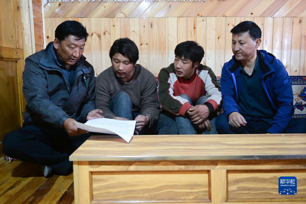 3月24日,在青海省黃南藏族自治州澤庫縣麥秀鎮(zhèn)龍藏村,麥秀林場護林員(左一)在牧民家中宣傳防火知識。新華社記者 張龍 攝