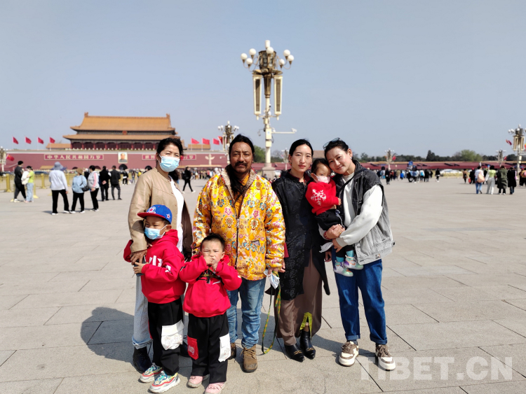 圖為3月31日,部分已出院的青海果洛唇腭裂患兒及患兒家屬來到天安門廣場游玩 北京同心共鑄公益基金會供圖