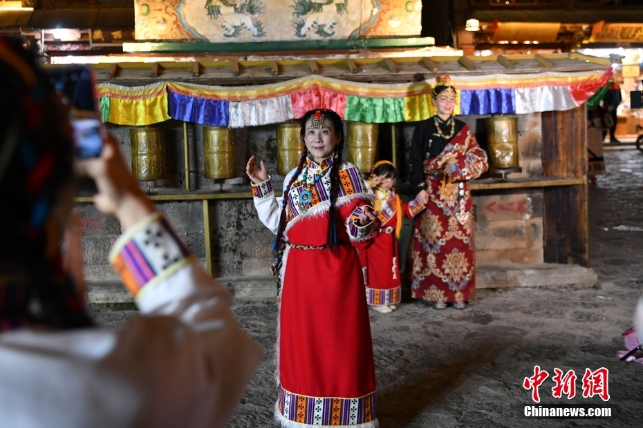 “當(dāng)下的年輕人特別喜歡旅拍,我們提供藏族服裝租借、化妝、拍攝外景服務(wù),每天一大早就有旅客上門。”藏咖旅拍店負(fù)責(zé)人達(dá)能拉姆說。