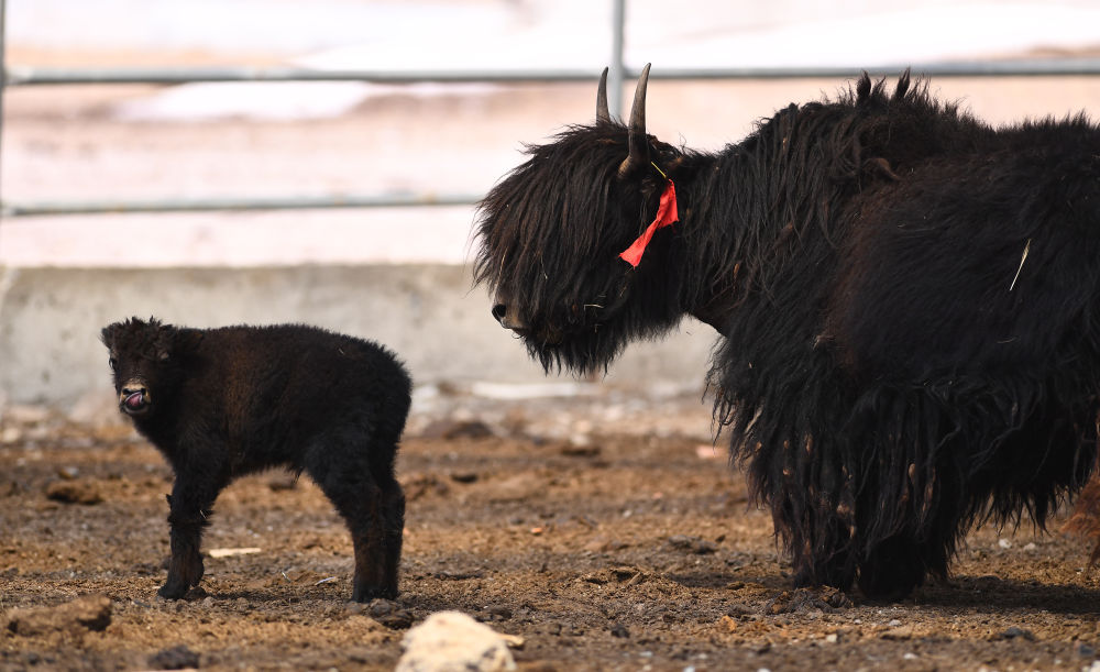 這是4月14日拍攝的剛察縣環(huán)湖型牦牛良種繁育基地內(nèi)的環(huán)湖型長(zhǎng)毛牦牛。新華社記者 張龍 攝