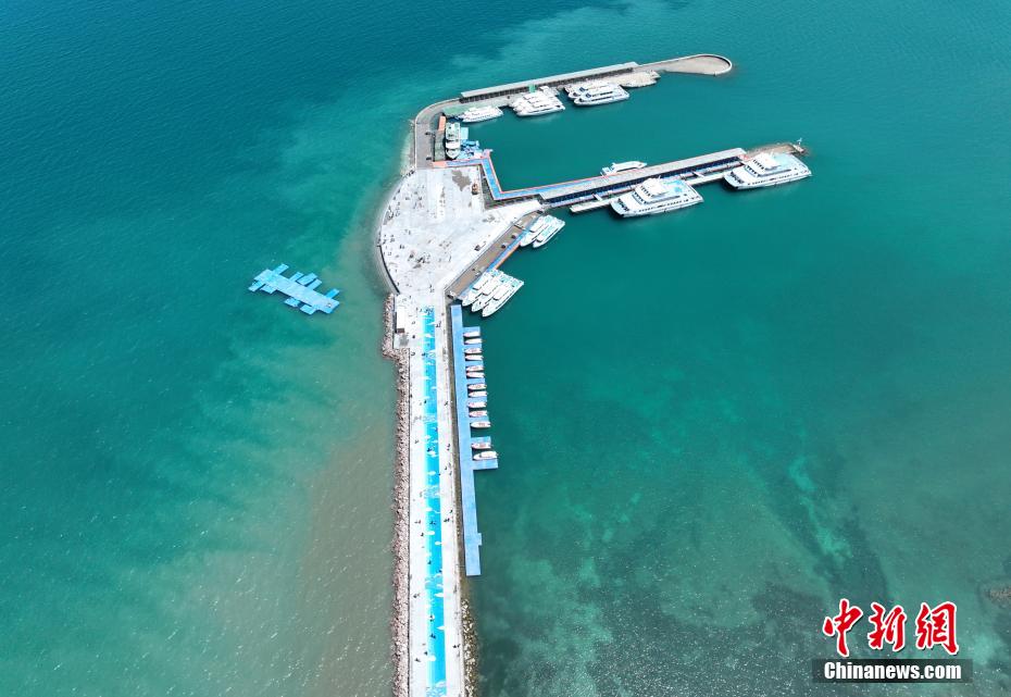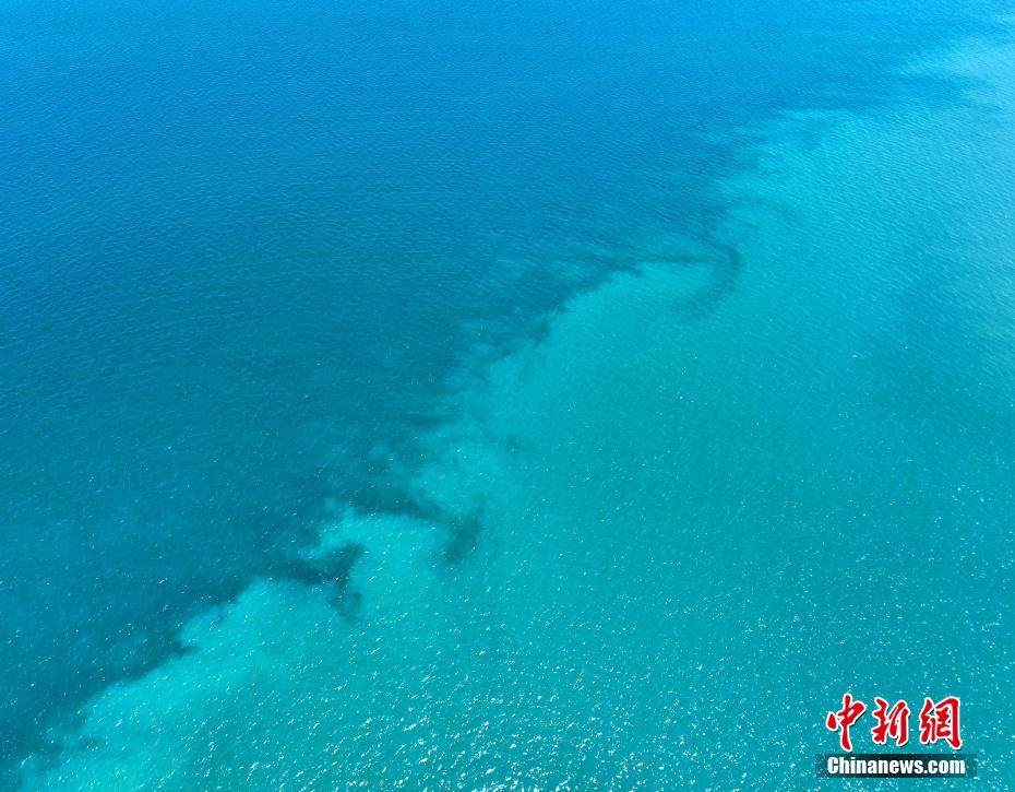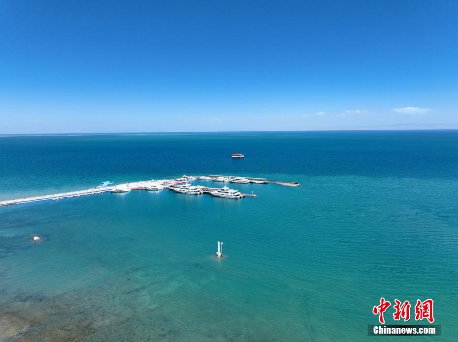 暮春時(shí)節(jié),素有“高原藍(lán)寶石”之稱的青海湖天高云淡、波光粼粼。遠(yuǎn)處的山與碧藍(lán)的湖水交相輝映,宛如油畫,美不勝收。圖為航拍青海湖水天一色。