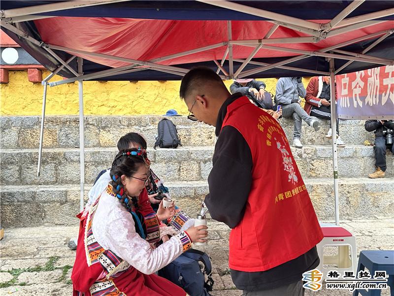 志愿者融入五一文明服務風景線。五一假期,香格里拉市青年志愿者堅守一線崗位,用無微不至的服務,接待好每一位游客。