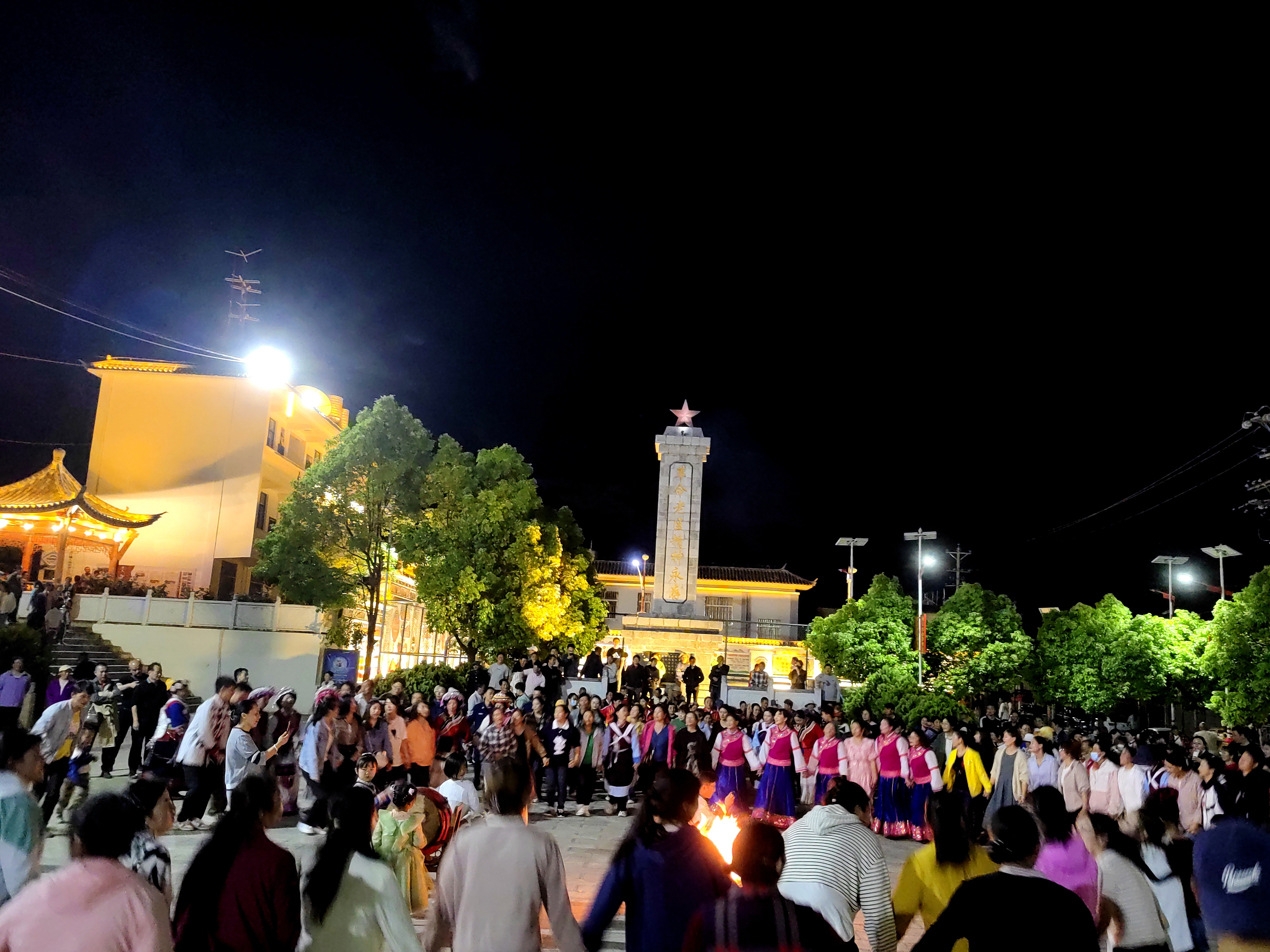 不多時(shí),在金江鎮(zhèn)小學(xué)學(xué)生吹奏的葫蘆絲聲中,篝火晚會(huì)的序幕徐徐拉開。