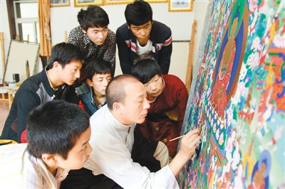 近年來,熱貢唐卡傳承保護工作不斷發(fā)展完善,已形成村落、家庭、傳習中心、高校多渠道傳承的格局。藝術(shù)的生命不僅僅在于傳承,更要在傳承中發(fā)展。如今,熱貢唐卡已走出雪域高原,古老的唐卡藝術(shù)正在煥發(fā)新的蓬勃生機。