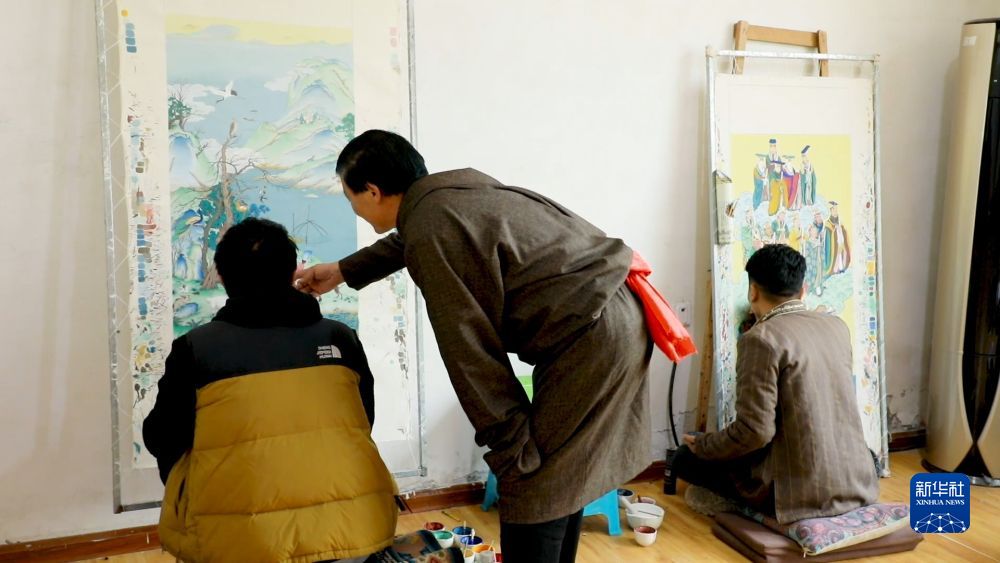 青海省黃南藏族自治州同仁市龍樹畫苑于2013年建成運行,是當?shù)赜忻姆俏镔|(zhì)文化遺產(chǎn)綜合傳習中心。隨著熱貢唐卡知名度的不斷提高,全國各地慕名而來的學員也越來越多。十年來,龍樹畫苑累計培養(yǎng)760名熱貢唐卡藝人。其中,年收入達到10萬元以上的有百余人,普通學員的年收入在四到五萬元。