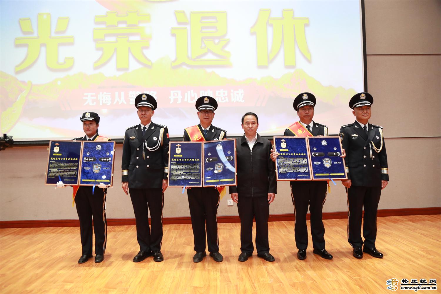 伴隨著陣陣掌聲,4名同志在全體民、輔警的見證下,徐徐入場(chǎng)。榮譽(yù)退休儀式伴隨著激昂嘹亮的《義勇軍進(jìn)行曲》拉開帷幕。