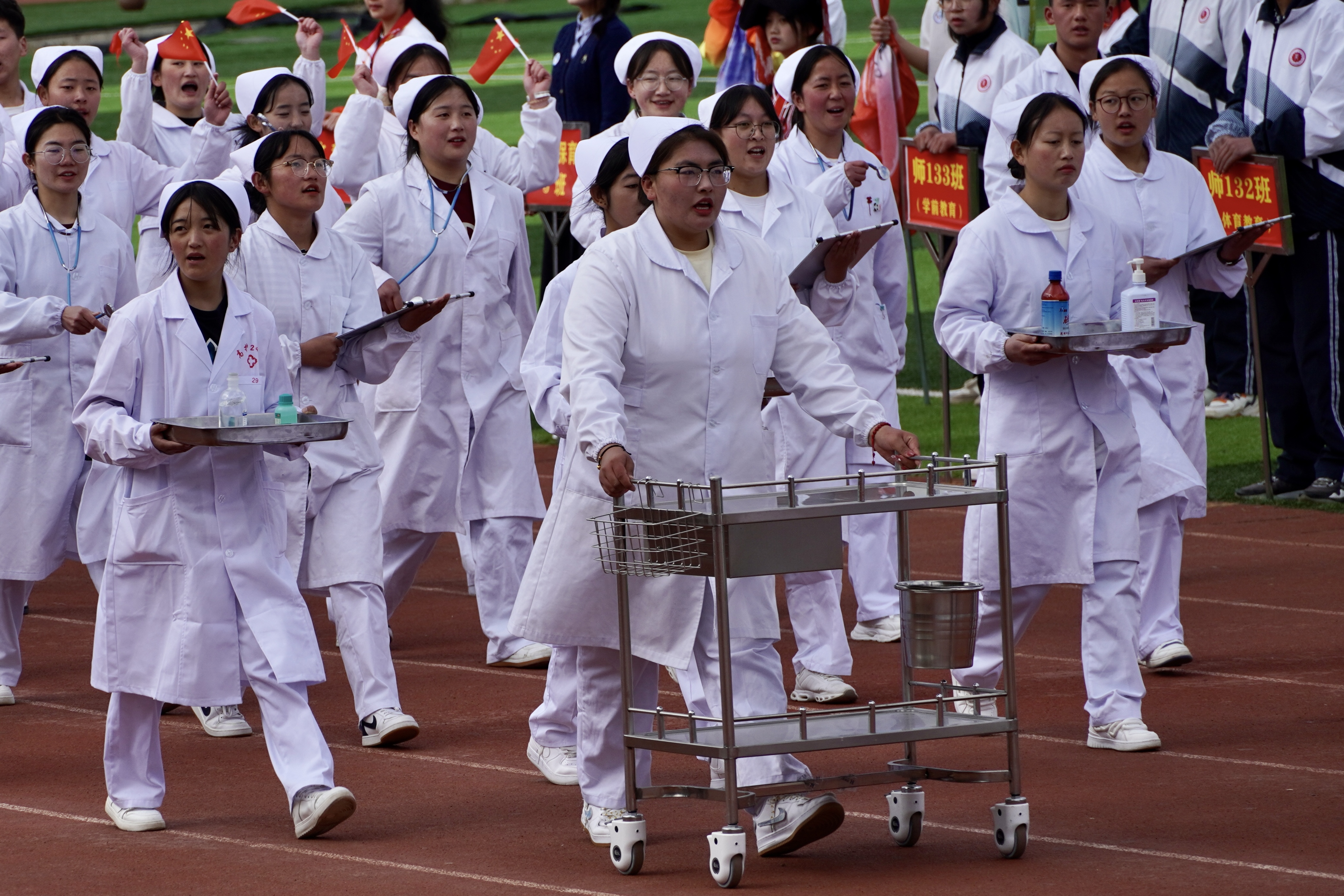 入場(chǎng)儀式上,同學(xué)們將體育運(yùn)動(dòng)與專(zhuān)業(yè)特色相結(jié)合,進(jìn)行獨(dú)具特色的風(fēng)采展示,贏得全場(chǎng)熱烈的喝彩與掌聲。