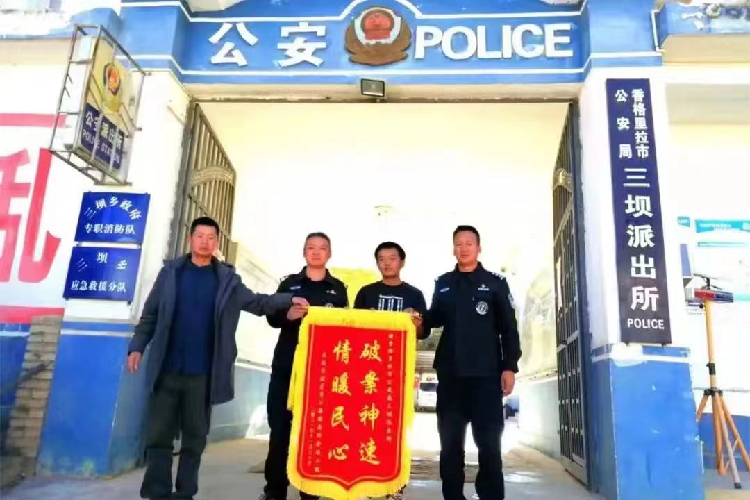 2022年4月18日,三壩派出所接到虎香公路六分部工作人員報(bào)警稱拌合站內(nèi)的灌車于17日被砸,攝像頭被盜,請(qǐng)求出警,到達(dá)現(xiàn)場(chǎng)后張宏帶領(lǐng)民輔警進(jìn)行現(xiàn)場(chǎng)勘查并對(duì)附近村民進(jìn)行走訪,經(jīng)過(guò)大量工作成功鎖定犯罪嫌疑人身份,將被盜的攝像頭找回,4月22日虎香公路六分部2名工作人員帶著一面印有“破案神速解民憂,感謝人民好警察”的錦旗來(lái)到三壩派出所找到張宏,對(duì)他們迅速找回被盜物品及破獲車輛被砸案表示感謝。
