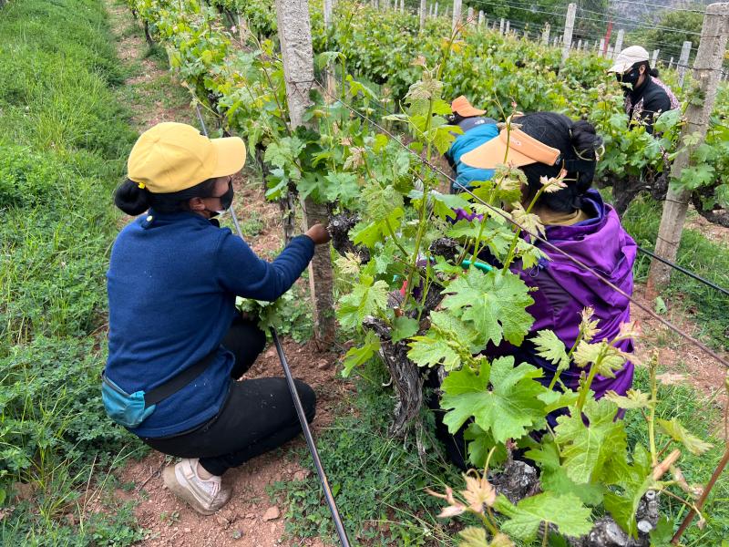 為不斷拓寬農(nóng)戶增收路子,公司與當(dāng)?shù)馗裆C范淦咸逊N植專業(yè)合作社合作,采取“租賃+務(wù)工”模式,按租賃每畝土地30個工,每個工120元的方式,為當(dāng)?shù)卮迕裉峁┬藜簟⒉烧?、釀酒等各類就業(yè)崗位。在此基礎(chǔ)上,村黨總支積極聯(lián)系香格里拉酒業(yè)股份有限公司,通過訂單收購方式,在阿東村下片四個村民小組收購赤霞珠,霞多麗,西拉等品種,從2012年至今每年以3.6元每公斤收購,戶均收入達(dá)12910元。