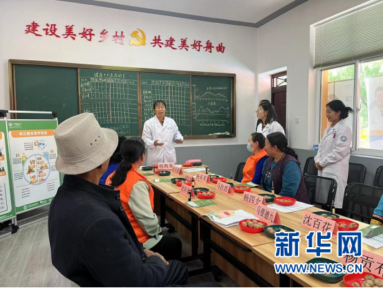 “一天中人的血壓在哪個時間段最高?”“血壓波動大起大落有多危險?”……26日上午,在甘肅省甘南藏族自治州舟曲縣立節(jié)鎮(zhèn)杰迪村活動室,華潤健康鄉(xiāng)村公益項目顧問、首都醫(yī)科大學(xué)全科醫(yī)學(xué)教授顧湲正和團(tuán)隊醫(yī)生科普健康管理常識。十多位村民在村醫(yī)、志愿者的協(xié)助下測血壓、血糖,完善“健康護(hù)照”信息,在趣味問答和互動中了解日常健康和慢性病防治知識。