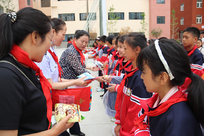 慰問組一行為50名困境兒童送上節(jié)日的祝福和禮物,勉勵他們要感恩父母、老師的教育陪伴,珍惜今天的幸福生活,從小樹立遠大理想,好好學習、天天向上,長大后為建設(shè)祖國和家鄉(xiāng)貢獻力量。