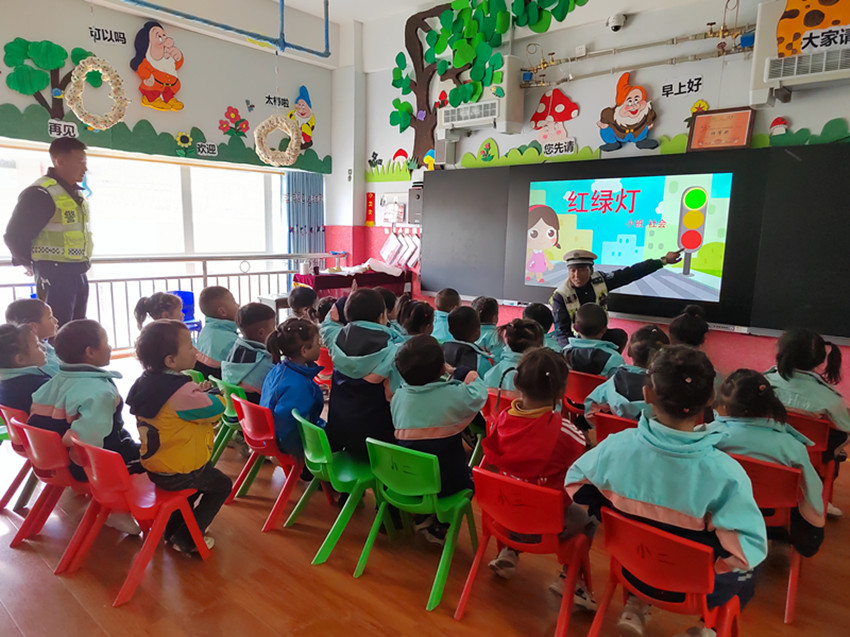 日前,理塘縣高城鎮(zhèn)幼兒園開展了交通安全進課堂活動,引導(dǎo)孩子們從小養(yǎng)成遵守交通規(guī)則的好習(xí)慣。圖為交警為幼兒講解交通安全知識。