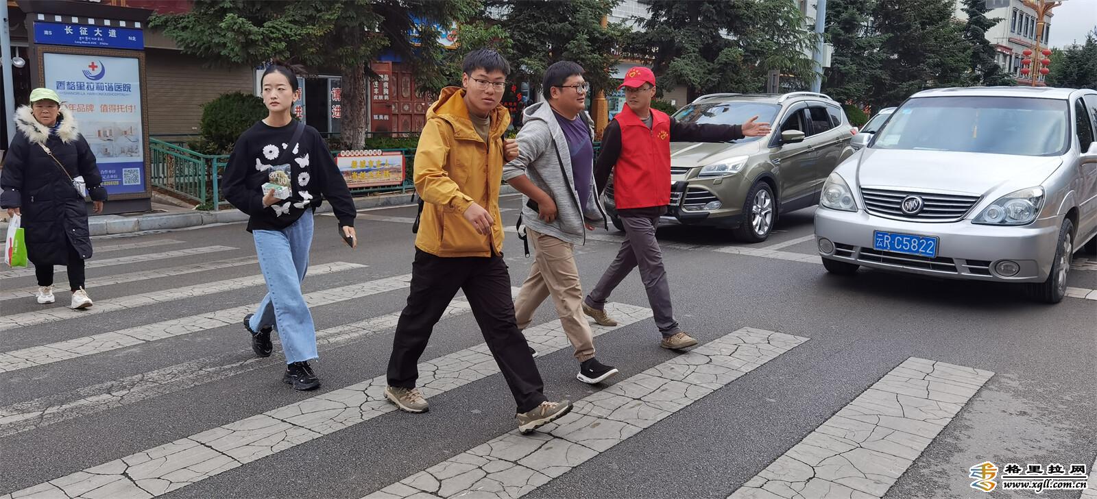 6月9日上午8時,香格里拉文明交通“紅馬甲”們開始了一天的文明交通勸導服務。