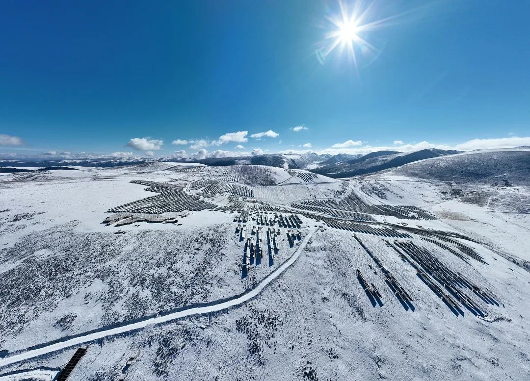 同時,項目工程量大,場址面積約16平方公里,由200多萬塊光伏組件、5000多臺逆變器、300多臺箱式變電站組成。針對系列痛點,為趕在今夏用電高峰前投運,建設者們創(chuàng)新工程技術手段,先后攻克10余項技術難題,創(chuàng)造了大型光伏項目在高寒高海拔地區(qū)冬季連續(xù)大規(guī)模施工的先例。