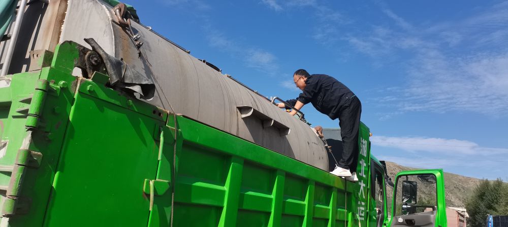 車輛進入一處服務(wù)區(qū)后,緩緩?fù)?吭诼愤?。李瑾翻身跳下車去,爬?米多高的車頂,打開水箱蓋細細查看,有幾條小魚在水面上游動著,似乎好奇地向外張望。
