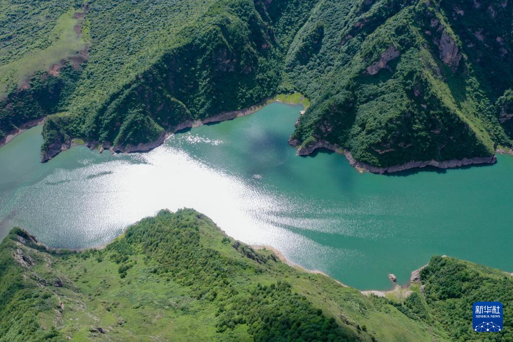 這是7月15日拍攝的冶力關(guān)旅游區(qū)天池冶海美麗風光(無人機照片)。新華社記者 郎兵兵 攝