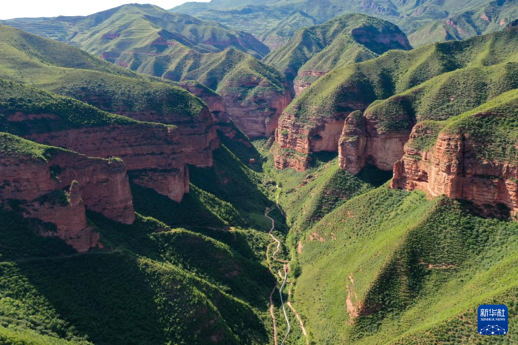 這是7月15日拍攝的冶力關(guān)旅游區(qū)“赤壁幽谷”丹霞地貌美麗風光(無人機照片)。新華社記者 郎兵兵 攝