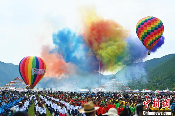 7月26日,第九屆中國·碌曲鍋莊舞展演暨碌曲縣慶祝甘南州成立70周年鍋莊文化節(jié)在甘肅省甘南藏族自治州碌曲縣開幕?;顒?dòng)現(xiàn)場,來自西藏、云南、青海、四川、甘肅五省區(qū)的23支代表隊(duì)在草原上跳起“萬人鍋莊”,吸引了不少國內(nèi)外游客前往觀看。