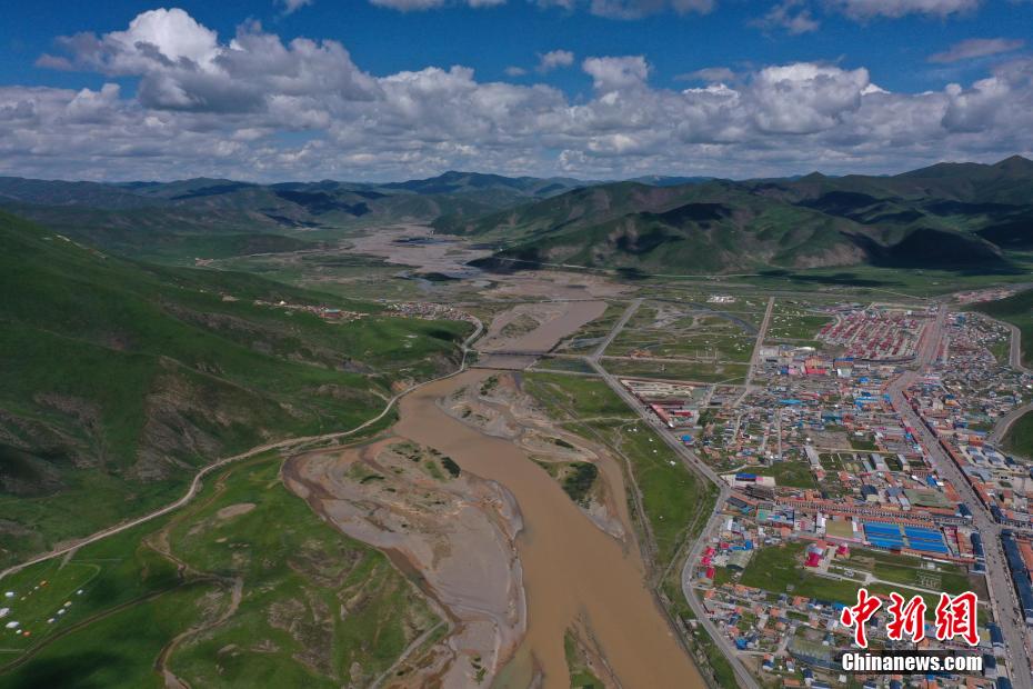 7月28日,航拍青海省果洛藏族自治州達日縣黃河辮狀水系。果洛州達日縣平均海拔在4200米以上,盛夏時節(jié),連綿的山巒披上“綠毯”,黃河流經其境內后,在開闊平緩的河道中數十條水流時而相匯時而分離,交織出巨型的辮狀水系,在群山和城鎮(zhèn)中蜿蜒流淌,形成獨特的高原壯美山河圖。