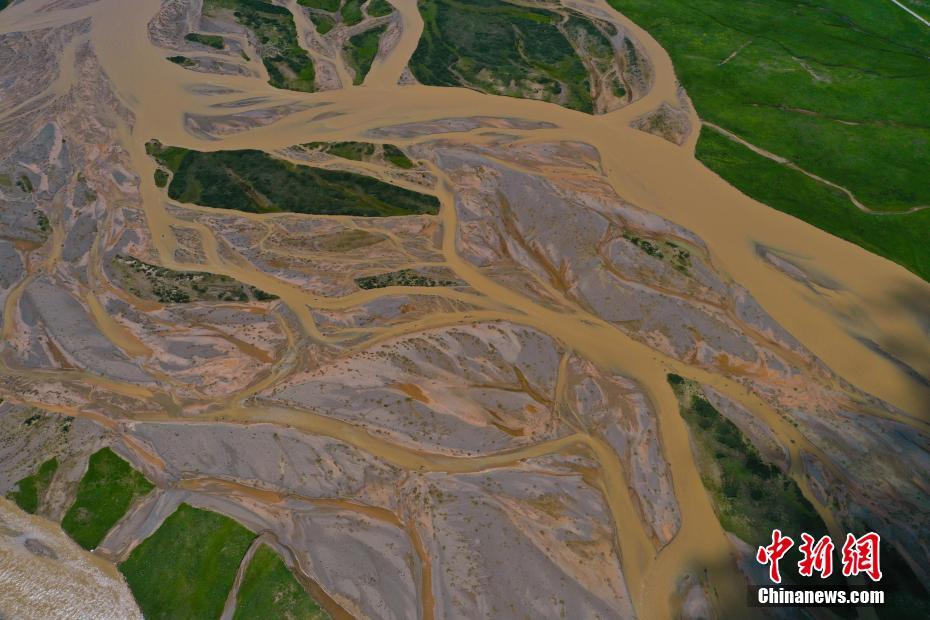 圖為航拍青海省果洛藏族自治州達日縣黃河辮狀水系。馬銘言 攝
