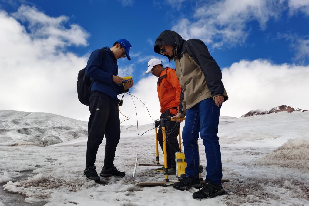 2023年江源綜合科學(xué)考察隊近日登上長江源區(qū)的兩條冰川——冬克瑪?shù)妆ê透窭|雪山主峰冰川,使用地質(zhì)雷達(dá)探測冰川厚度,為計算冰儲量積累基礎(chǔ)數(shù)據(jù),透過冰川演化揭示江源高寒地區(qū)的氣候變遷。[詳細(xì)] -