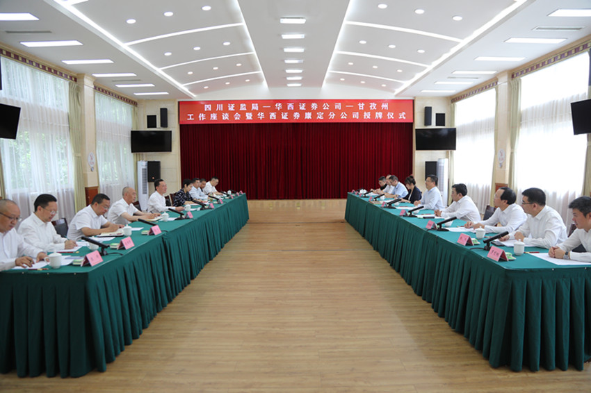 8月9日,中國(guó)證監(jiān)會(huì)四川監(jiān)管局、華西證券公司、甘孜州工作座談會(huì)暨華西證券康定分公司授牌儀式在康定舉行。甘孜州委書記沈陽(yáng)主持會(huì)議,中國(guó)證監(jiān)會(huì)四川監(jiān)管局局長(zhǎng)唐理斌,華西證券公司黨委書記周毅出席會(huì)議。
