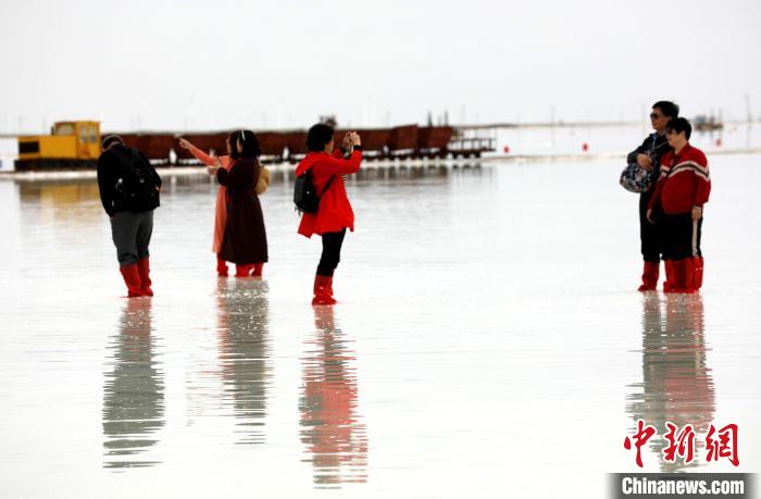 游客在茶卡鹽湖拍照。茶卡鹽湖景區(qū) 供圖