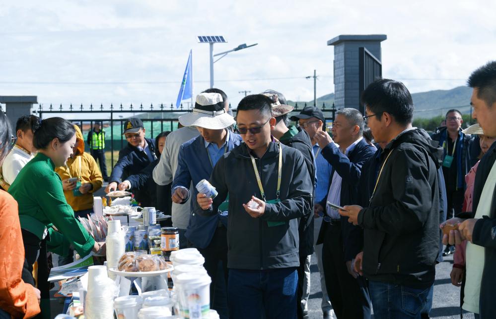 參會代表在四川省阿壩藏族羌族自治州紅原縣省級五星牦牛產(chǎn)業(yè)園區(qū)了解牦牛乳產(chǎn)品。耿小耀 攝