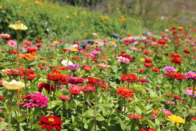 田間萬壽菊、百日菊、黑心菊、向日葵等簇?fù)硎⒎牛f里晴空下,朵朵菊花在秋風(fēng)中搖曳生姿,蜜蜂飛舞、蝴蝶翩躚,繪出了一幅色彩繽紛的秋日畫卷,令人賞心悅目。