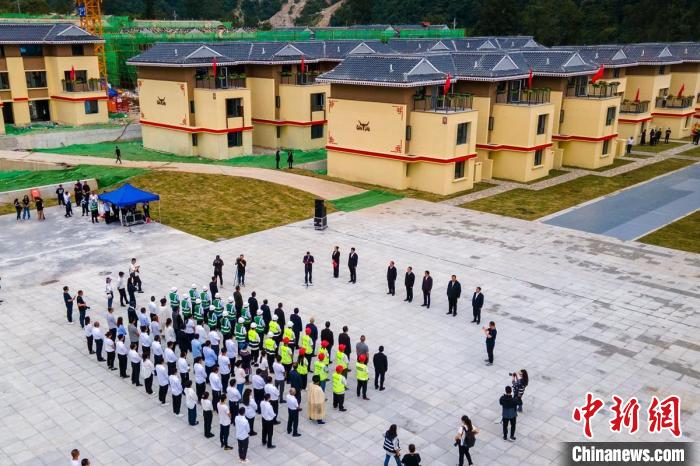 瀘定縣磨西鎮(zhèn)大杉樹村(幸福新村)集中安置點(diǎn)首批新房交付儀式現(xiàn)場。中新網(wǎng)記者 劉忠俊 攝