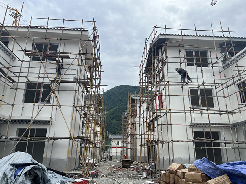 在德威鎮(zhèn)奎武村安置點,機器轟鳴、熱火朝天,工人們有的在噴外墻漆,有的在鋪設廣場地磚,大家各自忙著手中的活,齊心協(xié)力按下災后重建的“加速鍵”,共繪美好家園“新畫卷”。