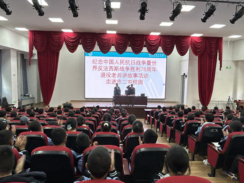 9月4日,康定市第二中學階梯教室里座無虛席,85歲高齡的康定籍退役老兵熊志榮正在向該校學生們講述保家衛(wèi)國的故事。[詳細] -