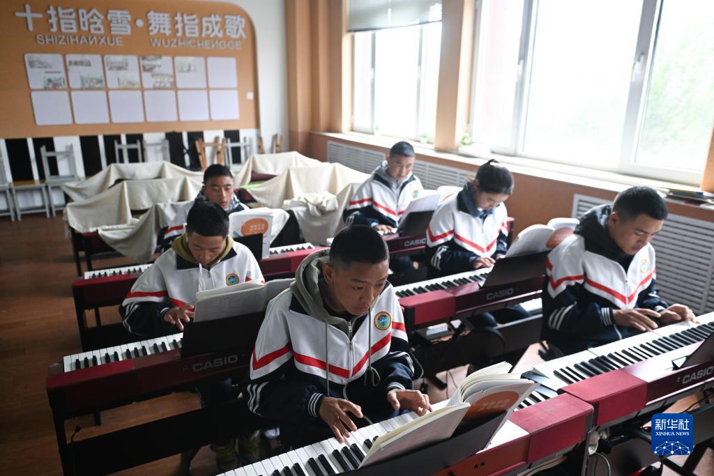 9月8日,在果洛藏族自治州職業(yè)技術(shù)學(xué)校,學(xué)前教育專業(yè)學(xué)生在上音樂課。新華社記者 張龍 攝