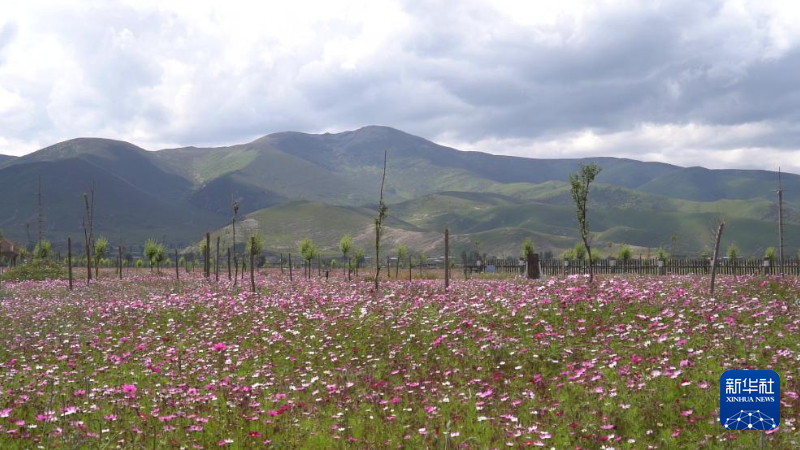 難以置信的是,這里曾是一片沙化嚴重的草場,當地村民靠傳統(tǒng)放牧已難以為繼。2016年以來,當地政府利用實施生態(tài)治理工程的契機,整合涉農涉旅資金,大面積種植格?;ǎ蛟斐鼋?600畝的色拉花海。