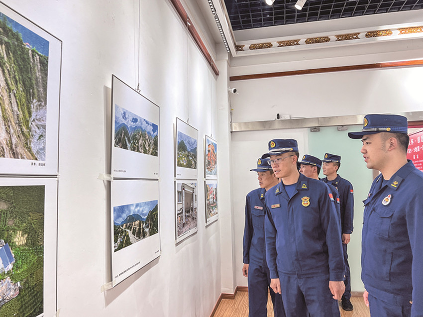 前來(lái)觀展的人群中,甘孜州消防救援支隊(duì)的劉銳和戰(zhàn)友們?cè)谡掌镎业搅俗约旱纳碛?,?dāng)時(shí)緊急救援的回憶漸漸涌回。[詳細(xì)]