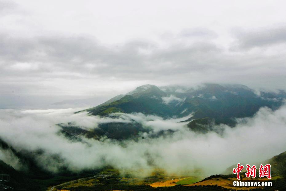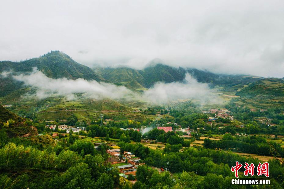 金秋9月,一場秋雨過后,青海省海南藏族自治州貴德縣山間云霧繚繞,白色云海像潔白的哈達飄落山間,與藍天、綠地相映成趣,風(fēng)光旖旎。