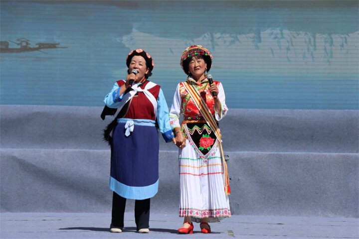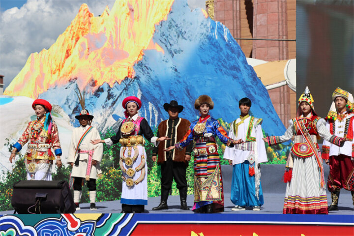 來自迪慶州文化館、俏夕陽藝術(shù)團、雍恰碩藝術(shù)團等的演員們帶來了《阿尺目刮》《犁牛調(diào)》《洛吉葫蘆笙打跳》等歌舞表演和走秀,為現(xiàn)場群眾帶來了一場文化盛宴,充分展現(xiàn)了迪慶州各族兒女共同團結(jié)進步、共同繁榮發(fā)展的時代風貌。