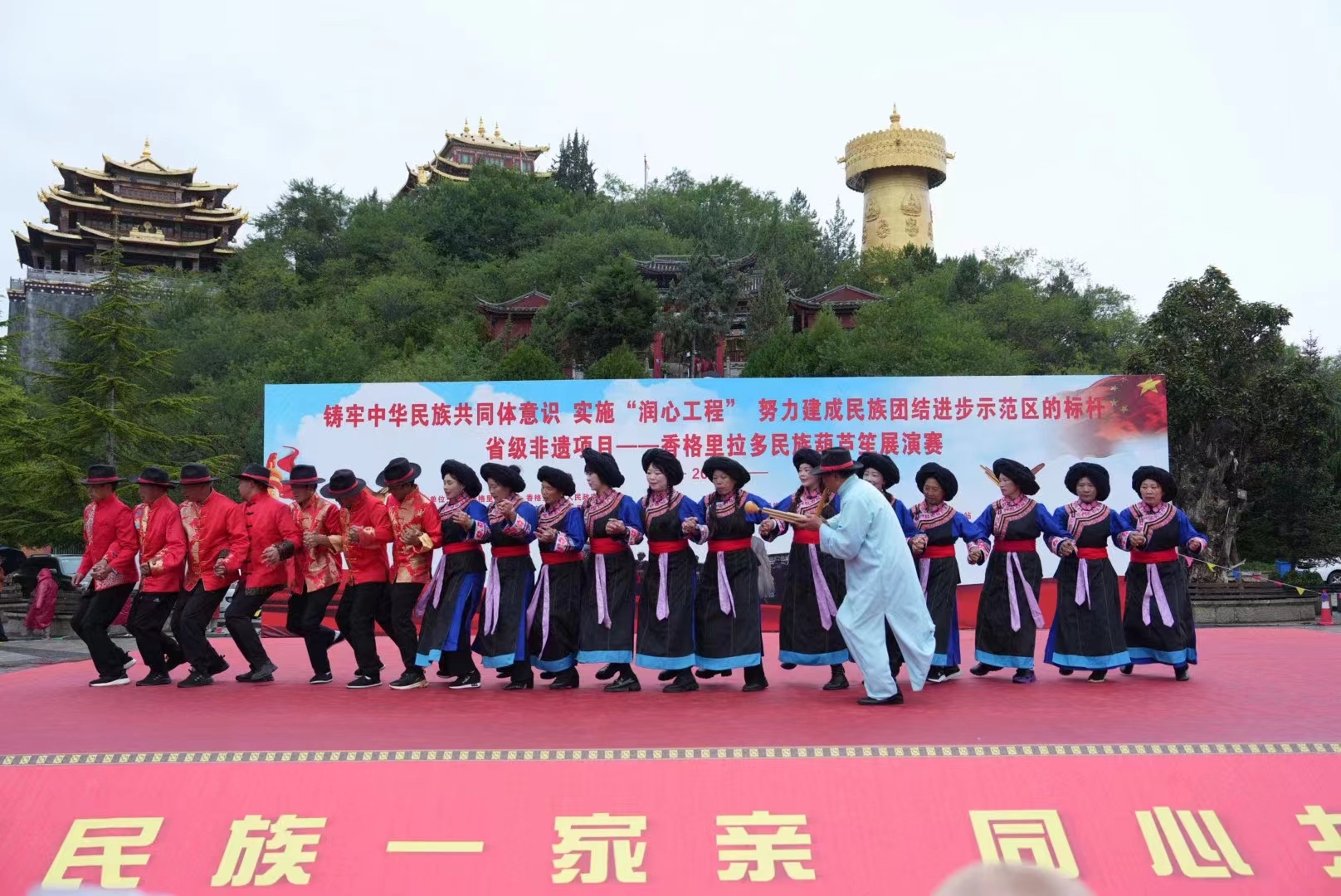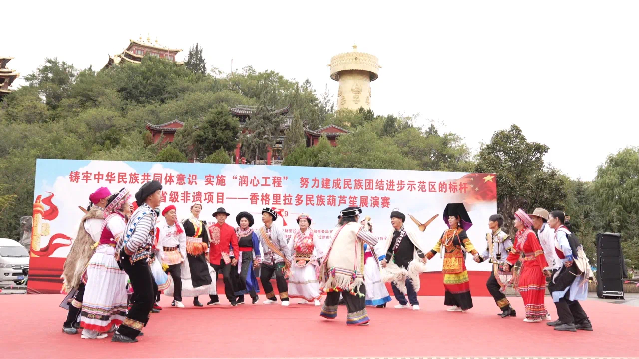 9月13日,香格里拉多民族葫蘆笙展演賽活動在獨(dú)克宗古城月光廣場舉行。