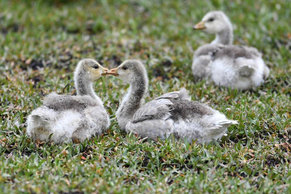 斑頭雁幼鳥在甘肅尕海則岔國(guó)家級(jí)自然保護(hù)區(qū)的尕海濕地嬉戲。 新華社記者 陳斌 攝