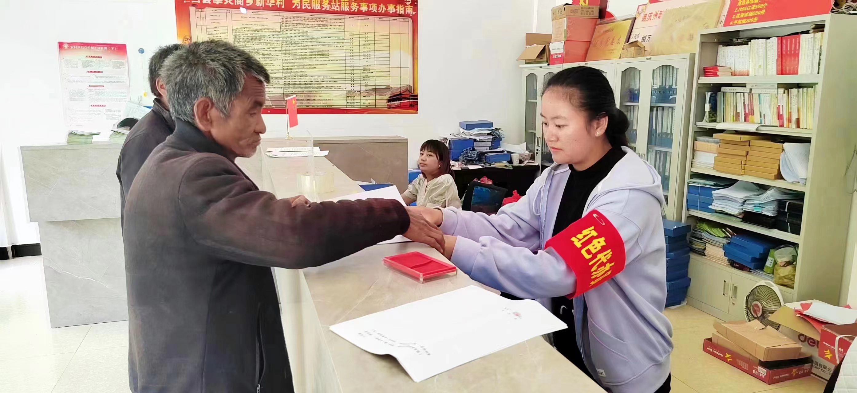 維西縣攀天閣鄉(xiāng)新華村依托網(wǎng)格建立“紅色代跑1小時(shí)服務(wù)圈”,組建“黨員紅色代辦”服務(wù)隊(duì),積極為群眾服務(wù)。