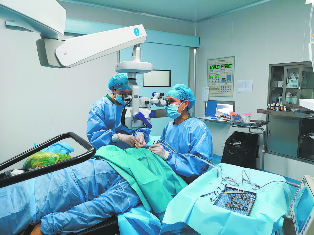 魯青眼科醫(yī)院援青醫(yī)生在進行白內(nèi)障手術(shù)。